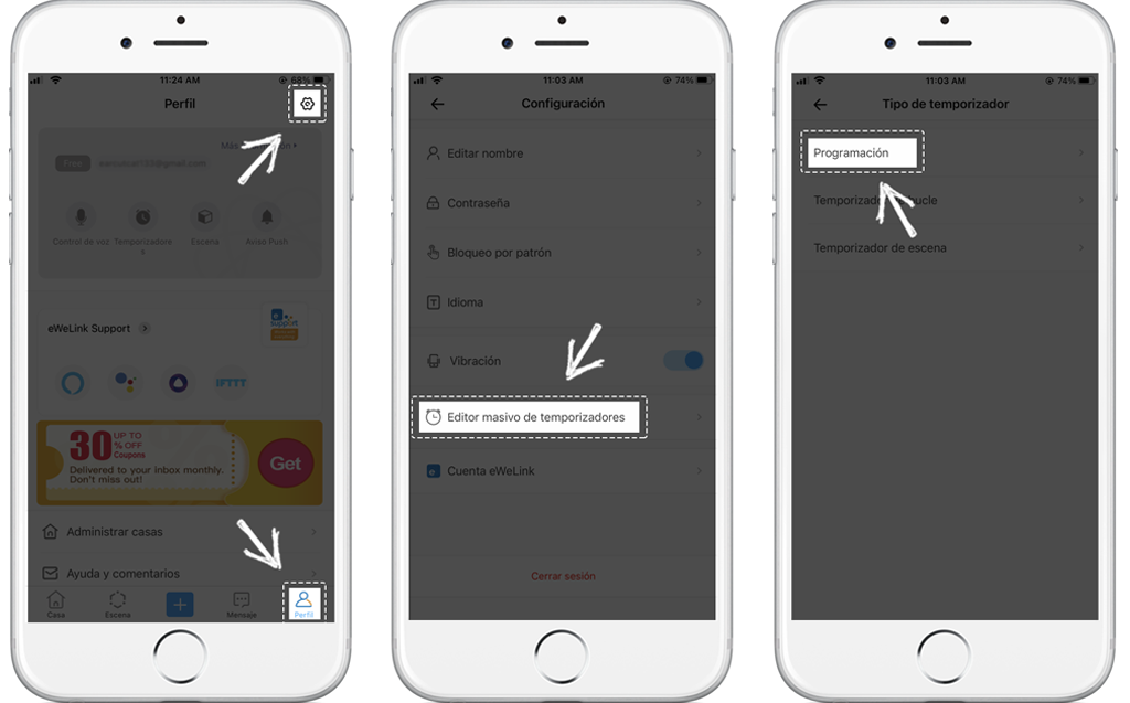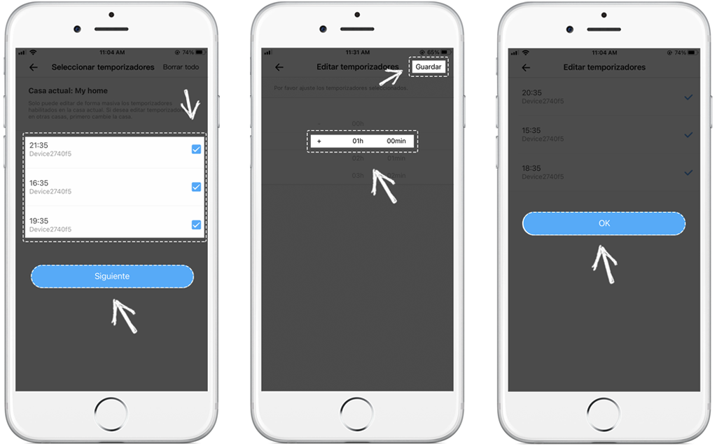 A medida que el reloj se establece hacia adelante 1 hora, sus horarios y temporizadores para sus dispositivos de soporte de eWeLink también requerirán ajustes. Vale la pena mencionar que las escenas basadas en el tiempo también requieren cambios. Entendemos que es molesto cambiar tantos horarios y temporizadores por completo. Aquí es donde la función Editor masivo de temporizadores es muy útil. Puede seleccionar varios temporizadores al mismo tiempo para editarlos todos al mismo tiempo.