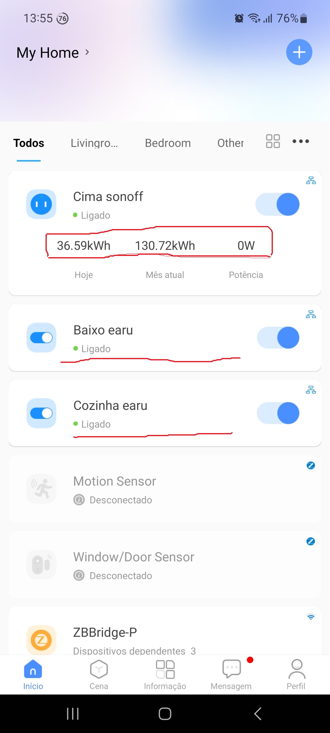 hi why does the sonoff show power on the main menu and the aeru only shows power when i select the breaker individually?